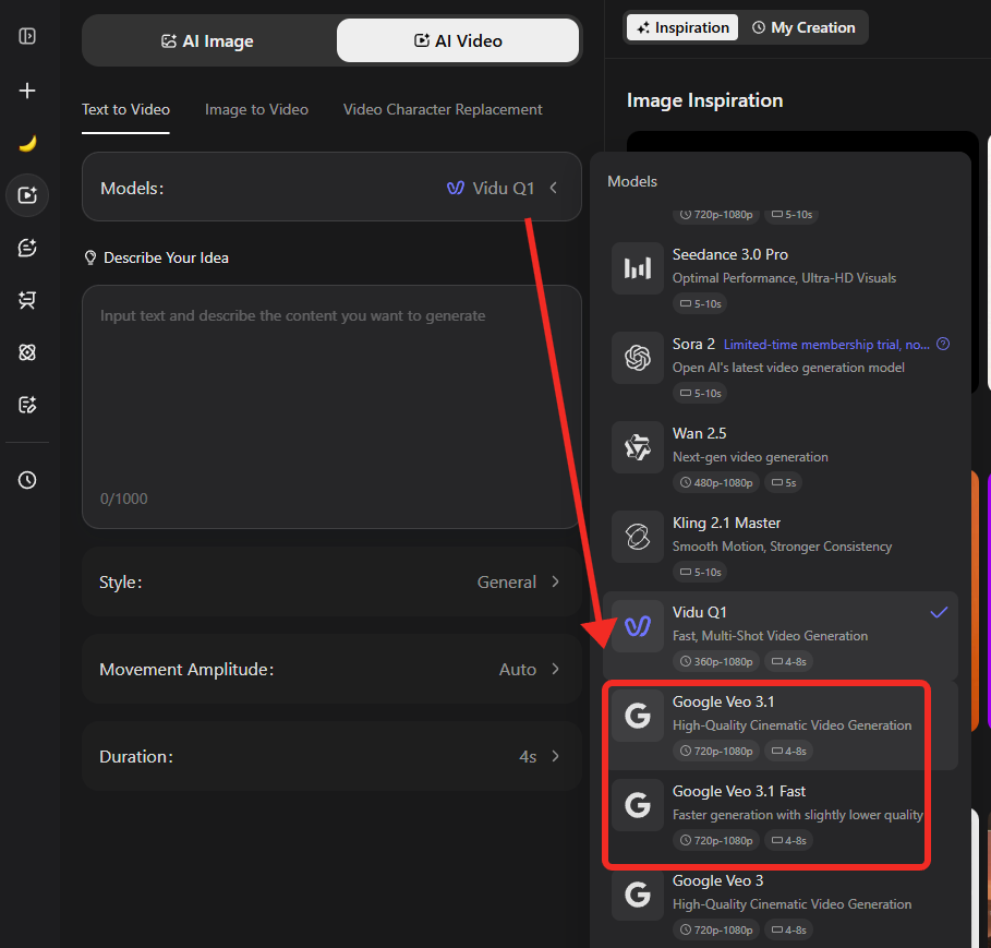 3 、全球最新、最先进的 AI 视频模型( veo3.1 、vidu…)