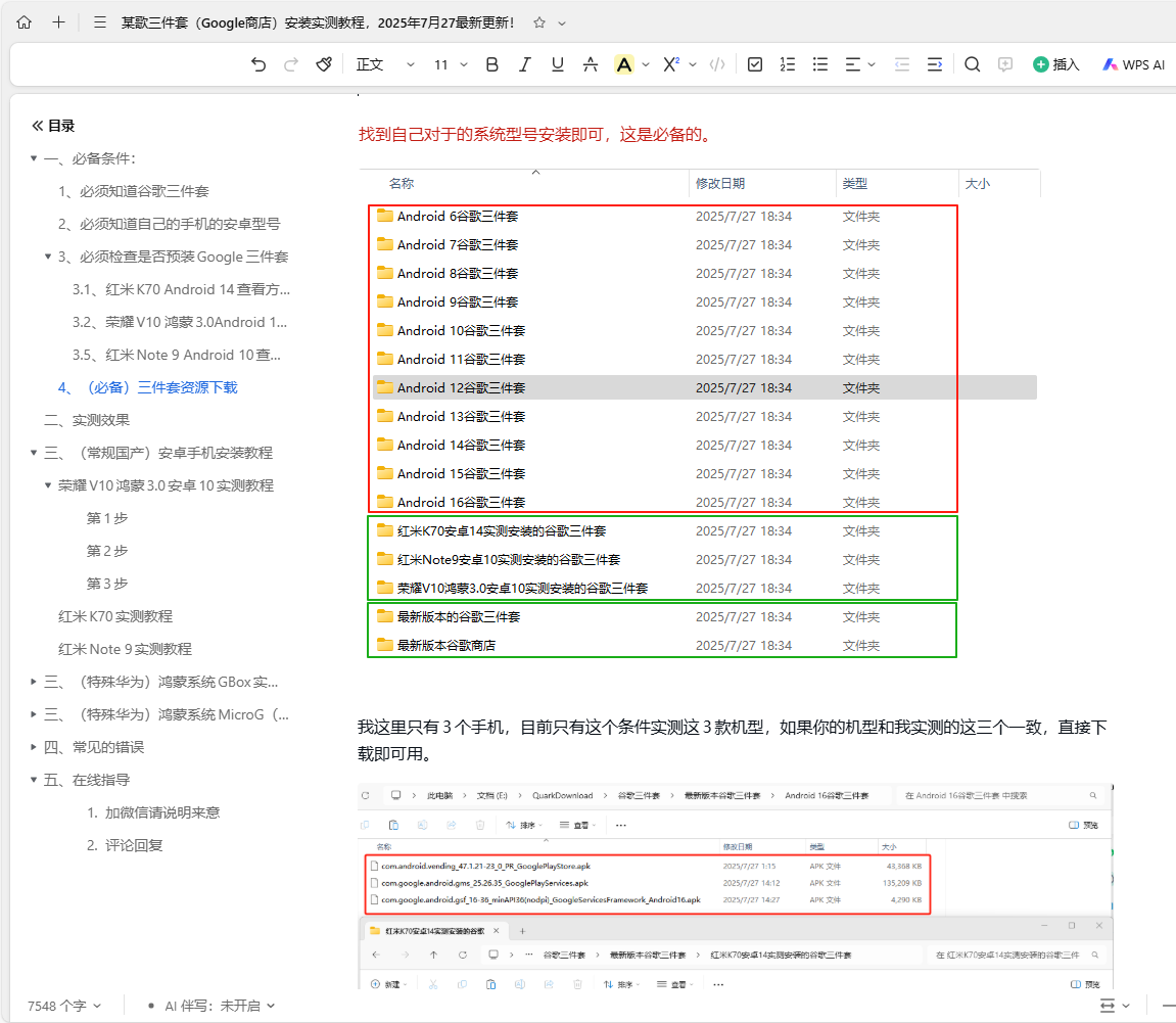 一句话解释就是:想要完美运行海外软件(那不就是谷歌系的 App ),必须安装谷歌商店,必备条件是安装 GMS (谷歌移动服务),通俗点说就是谷歌三件套。 1 、谷歌 Play 商店( Google Play Store ) 2 、谷歌 Play 服务( Google Play Service ) 3 、谷歌服务框架(Google Service Framework) 提醒一下:我之前用的真我 GT2 Pro ,就一个谷歌服务框架,即可运行谷歌商店。 实测了 3 款安卓手机,目前我也只有这 3 个手机,全部安装成功,完美运行。 荣耀 V10 鸿蒙系统(实际 Android 版本是 10 ):  红米 K70 Android 14:  红米 Note 9 Android 10 ;  之前整理+实测的教程,大家有兴趣的可以收藏一下: https://www.kdocs.cn/l/cpuoCFq8j6FN  |