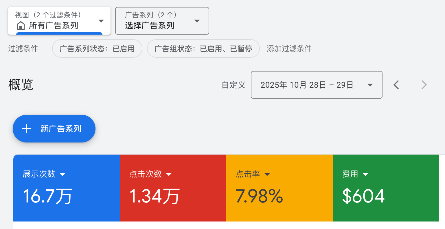 google 广告不是需要有一个学习期吗, 你这个 28-29 是包含了这段时间吗